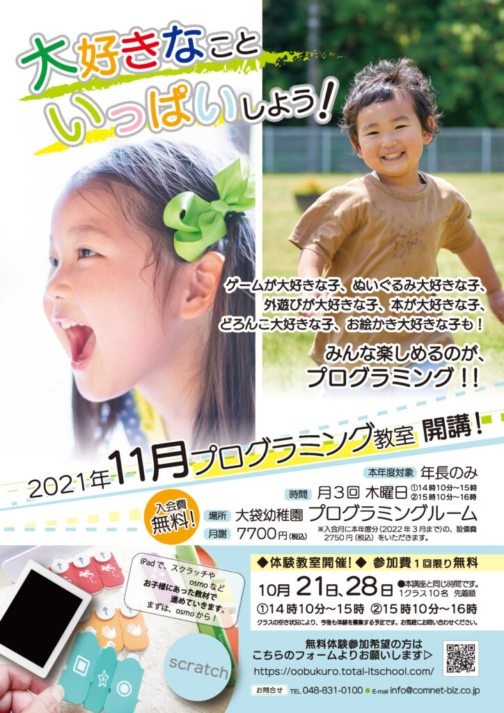 (個人個人の進み具合により、osmoの上級や、Scratch(スクラッチ)でのプログラミングの学習を検討していきます。)